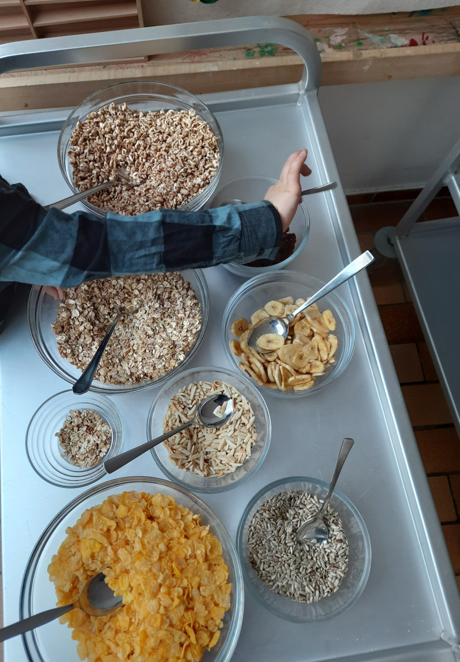 Stärkung der Selbständigkeit: Durch das eigene Zusammenstellen des Müslis treffen die Kinder selbst Entscheidungen und übernehmen Verantwortung für ihr Frühstück.